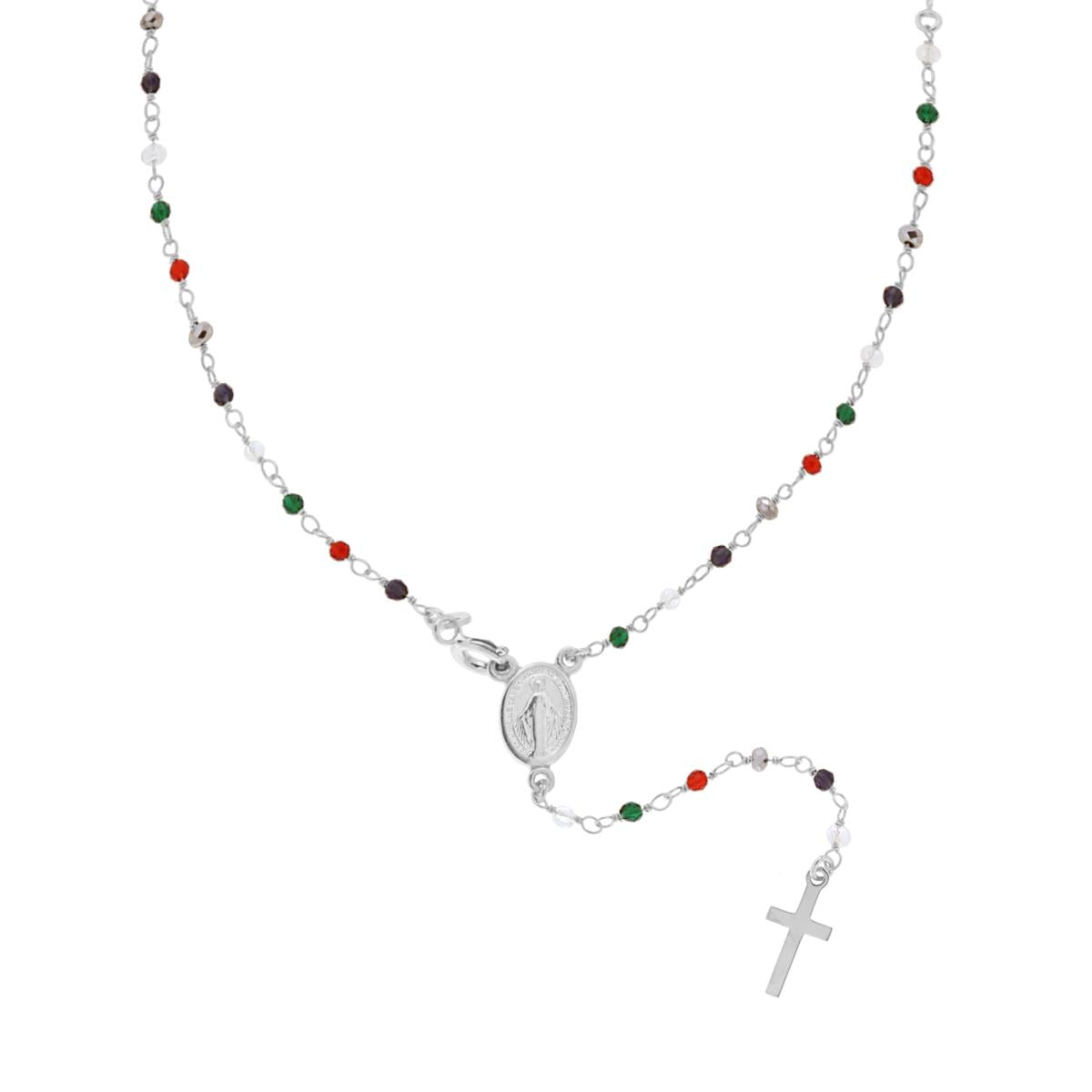Rosary Necklace cm 50 with Multicolor Crystal Grains mm 2 in SILVER 925 Galvanic Rhodium